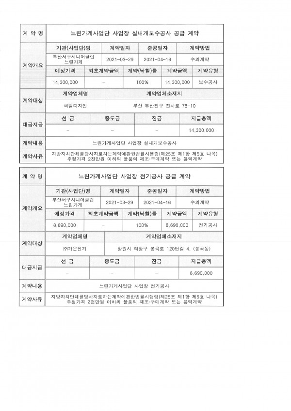 부산서구시니어클럽 2021년 수의 계약 정보 공개 페이지 정보 작성자 부산서구시니어클럽 댓글 0건 조회 11,228회 작성일 21-10-06 11:31 본문 .. 목록 이전글부산서구시니어클럽 사회복지사 채용 결과 안내의 건 21.10.23 다음글2021년 부산서구시니어클럽 신규 직원 채용 공고의 건 21.09.27 댓글목록 댓글목록 등록된 댓글이 없습니다.