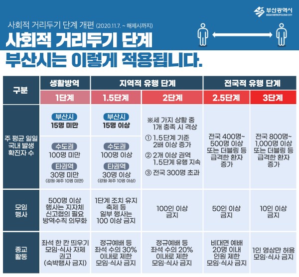 '사회적 거리두기 단계' 부산시는 이렇게 적용됩니다. 페이지 정보 작성자 부산서구시니어클럽 댓글 0건 조회 11,408회 작성일 20-11-24 14:58 본문 사회적 거리두기 단계 개편(2020.11.07.~해제시까지) 목록 이전글2021년도 노인일자리 및 사회활동 지원 사업 참여자 모집 공고 20.11.24 다음글부산서구시니어클럽 3차 추가경정 세입세출예산서 공고 20.10.23 댓글목록 댓글목록 등록된 댓글이 없습니다.
