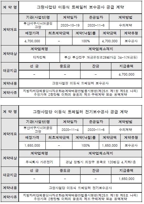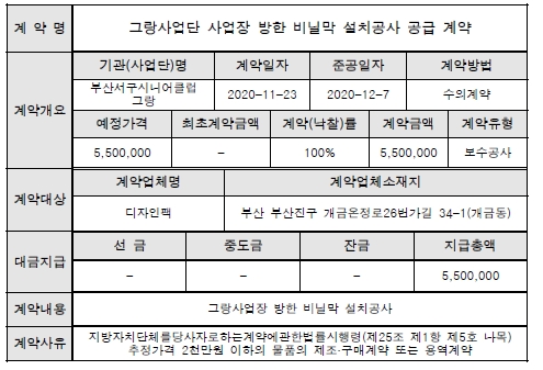 부산서구시니어클럽 2020년 수의계약 정보공개