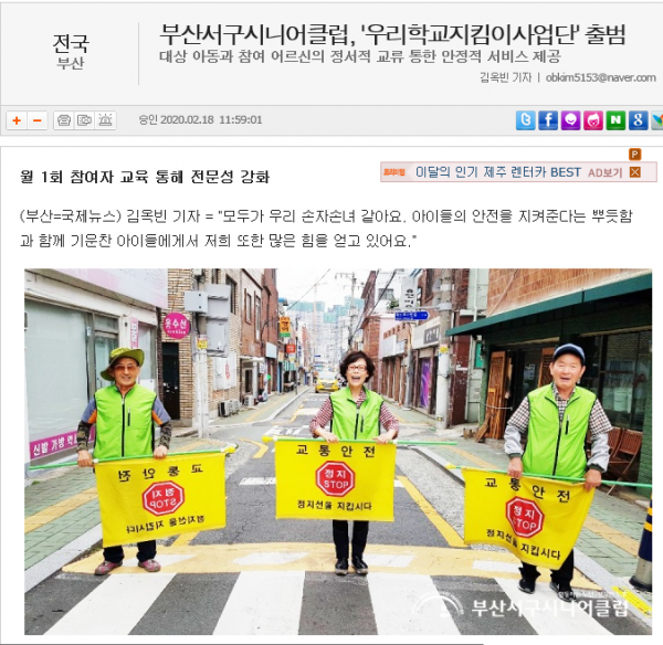 [언론보도:국제뉴스]부산서구시니어클럽,'우리학교지킴이사업단'출범 페이지 정보 작성자 부산서구시니어클럽 댓글 0건 조회 7,454회 작성일 20-02-20 17:07 본문 국제뉴스 2020면 2월 18일 김옥빈기자 [기사원본링크] http://www.gukjenews.com/news/articleView.html?idxno=1243005 목록 이전글노인에 반하다! 노인은 일할 수 없는 사람이라는 생각에 반대합니다! 20.09.21 다음글[언론보도:복지유관기관]상큼한 노후를 만들기 위해 일하는 100세! 20.02.03 댓글목록 댓글목록 등록된 댓글이 없습니다.