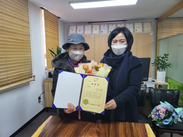 그래서 기관에서 관장님과 함게 조촐하게 시상식을 실시하였습니다.