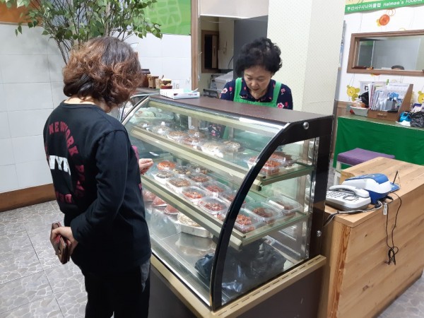 할매즈 푸드 작업장 판매 현장 페이지 정보 작성자 부산서구시니어클럽 댓글 0건 조회 10,381회 작성일 18-11-14 15:22 본문 할매즈 푸드 작업장에서 손님에게 반찬을 팔고 있는 참여 어르신의 모습입니다. 목록 이전글어르신들과 함께하는 행복한 노후를 위한 가을 명상 여행 18.11.14 다음글할매즈 푸드 작업장 18.11.14 댓글목록 댓글목록 등록된 댓글이 없습니다.